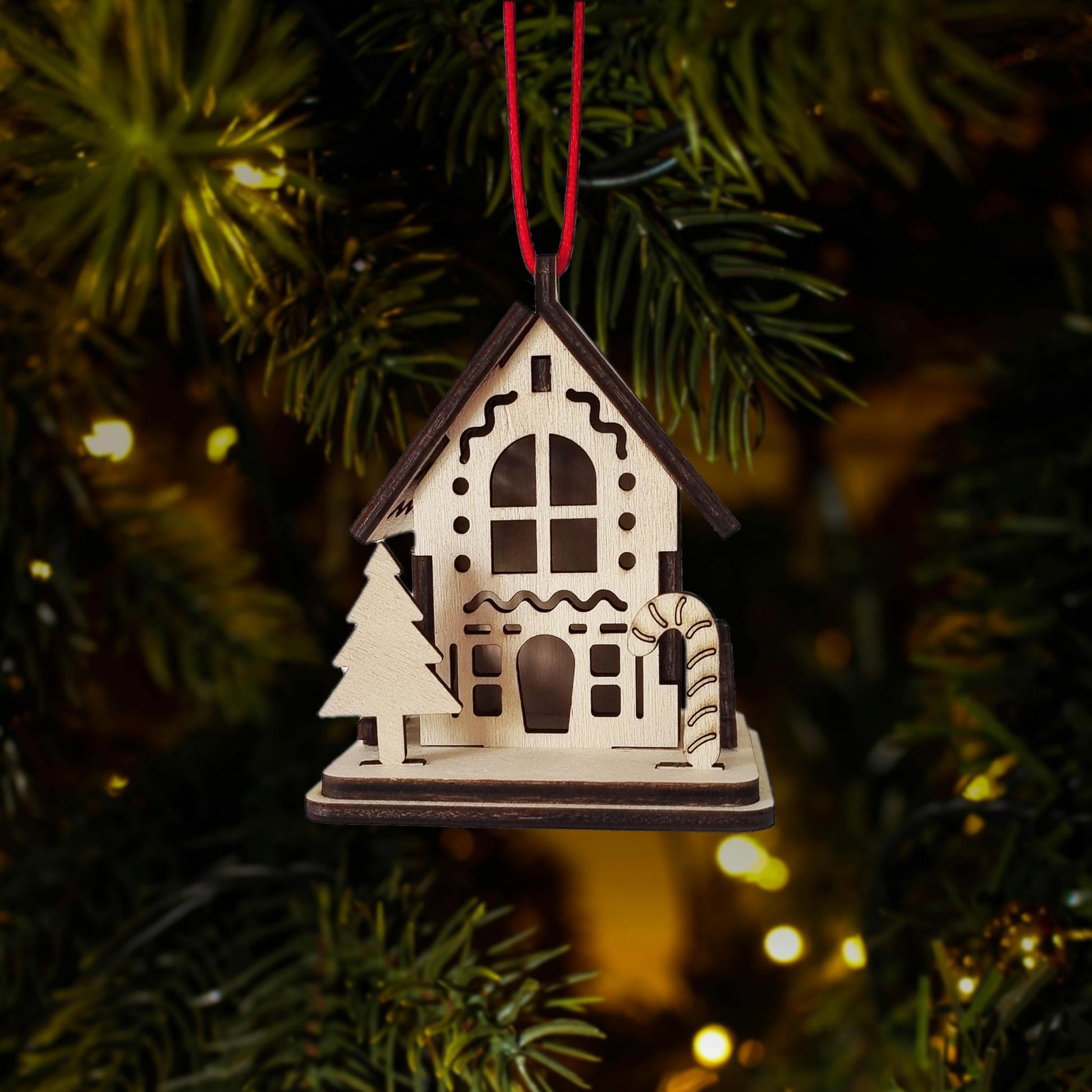 Décorez votre sapin de Noël avec style en ajoutant cette magnifique boule en bois à thème "Maisons" n°3.