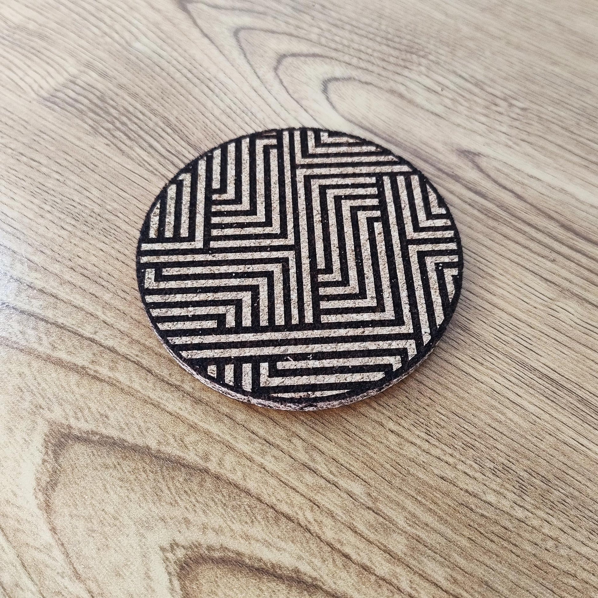 Sublimez votre table avec ce dessous de verre en liège orné d'un design géométrique unique.