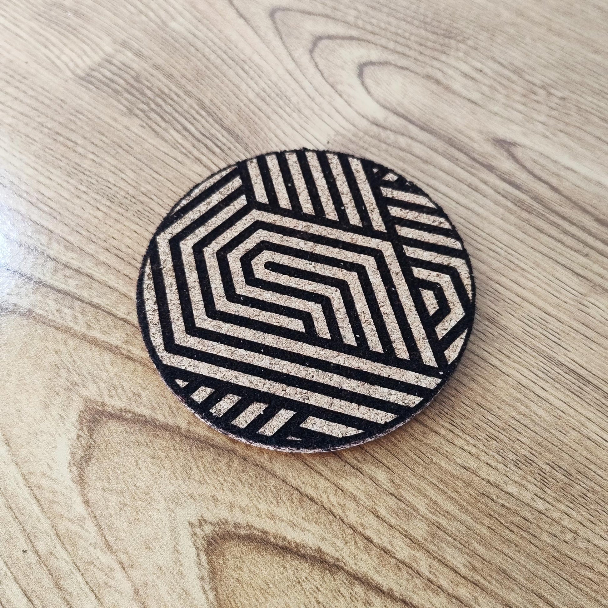 Sublimez votre table avec ce dessous de verre en liège orné d'un design géométrique unique.