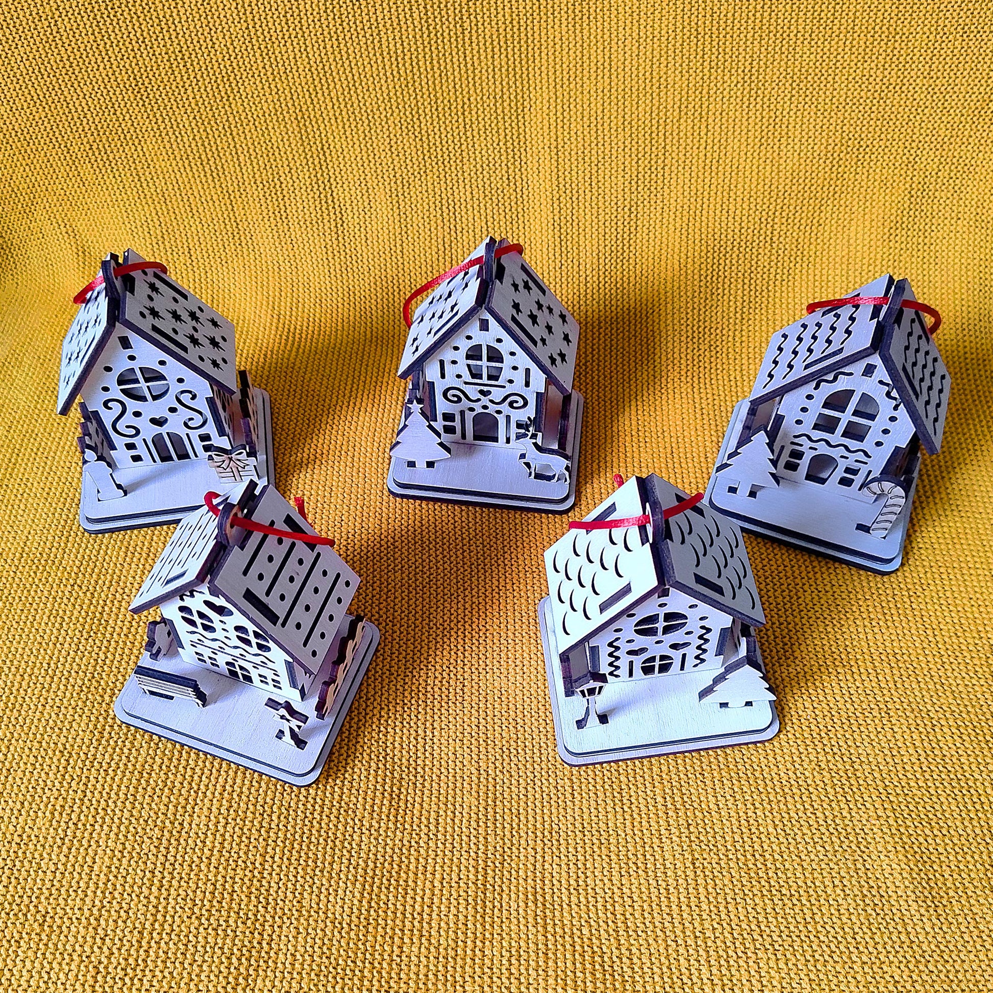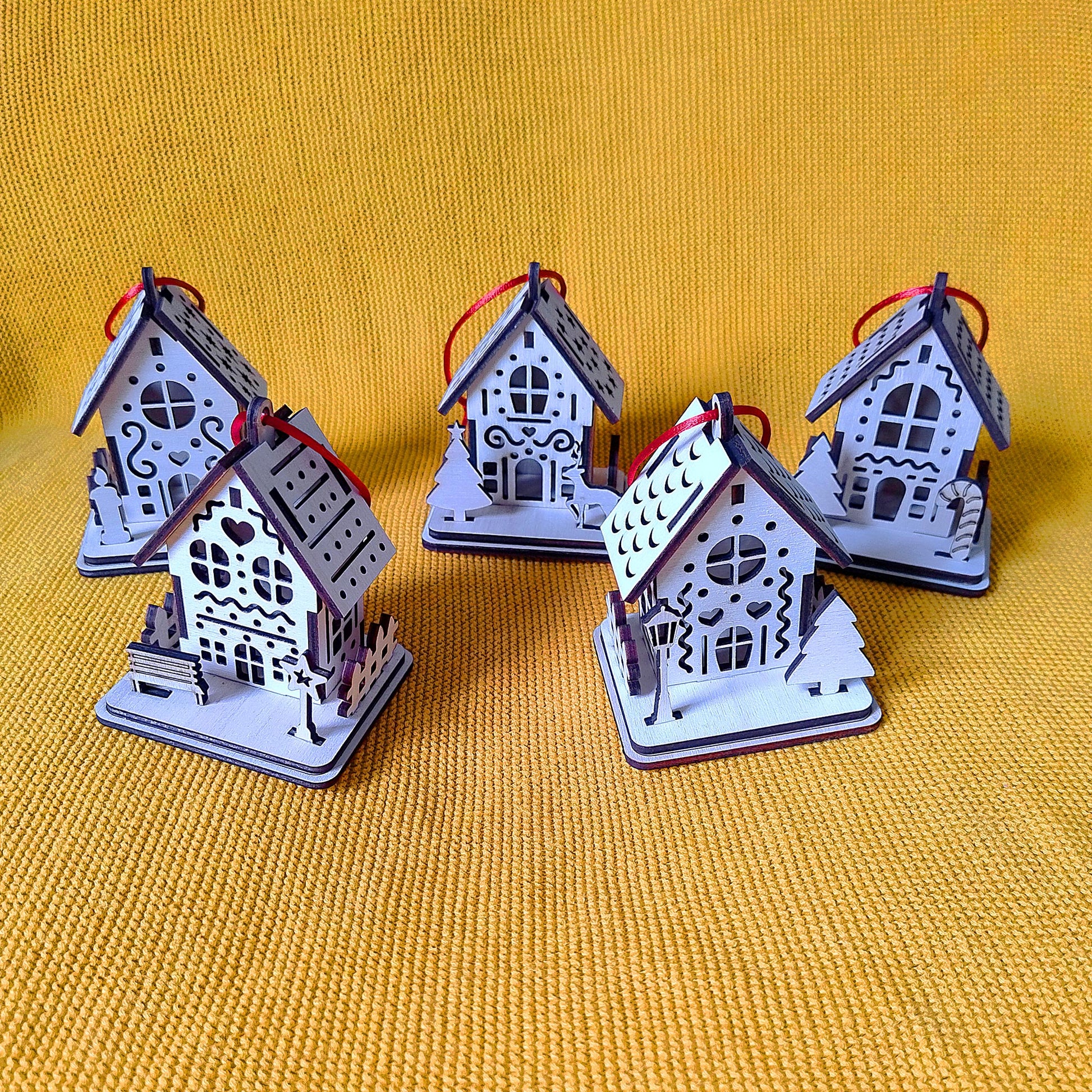 Transformez votre sapin de Noël en un village de conte de fées avec ces 5 adorables boules en bois en forme de maisonnettes.