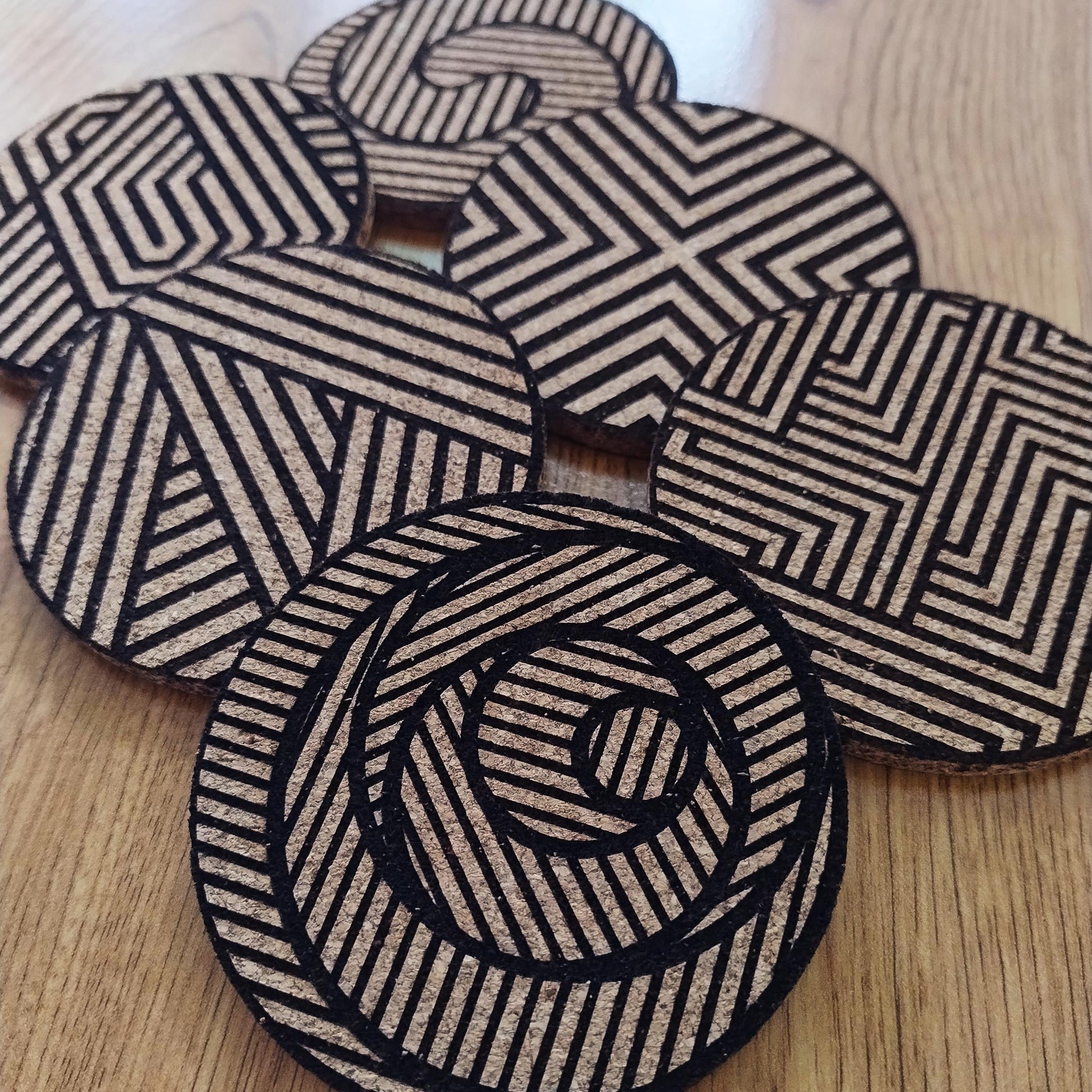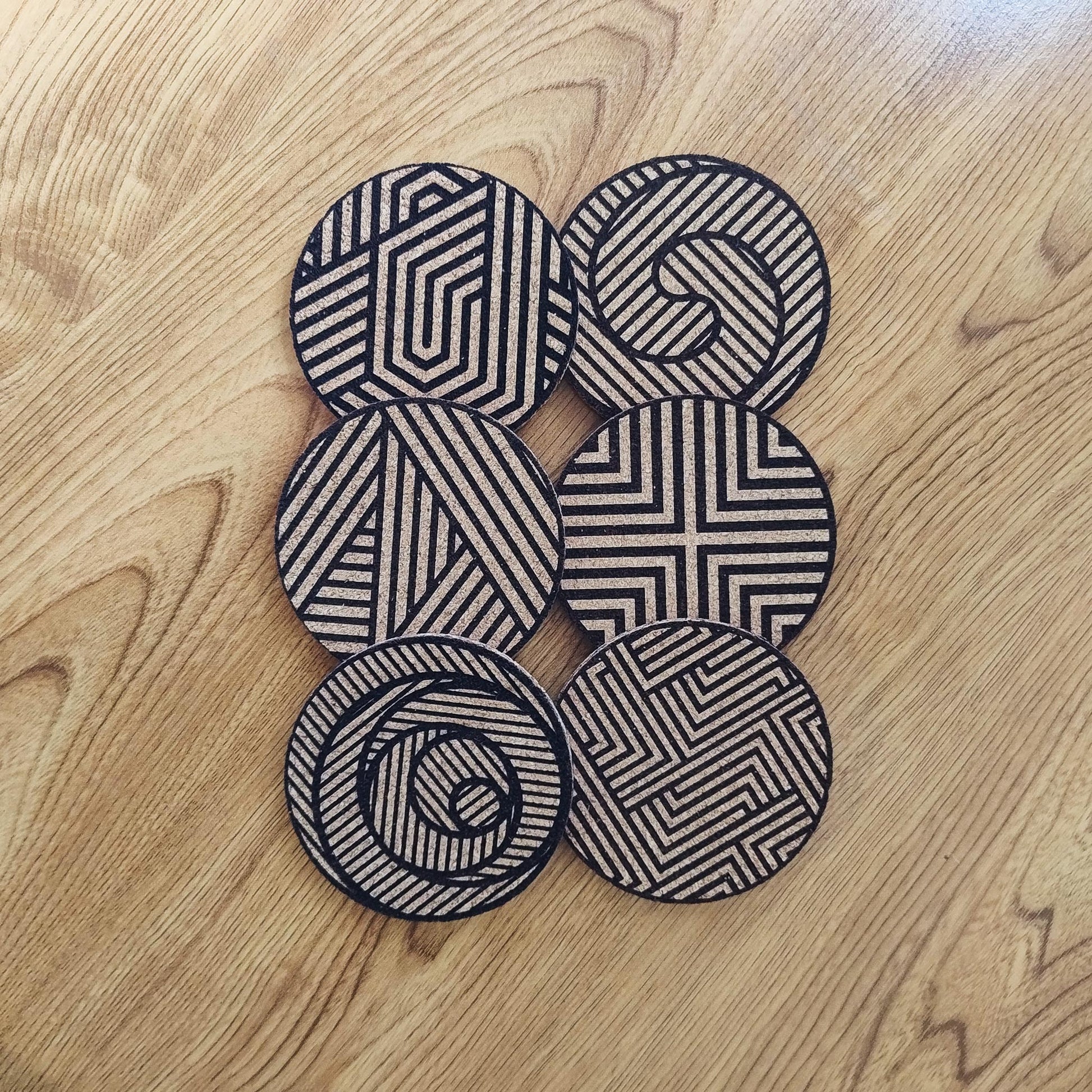 Lot 6 Dessous de Verre en Liège Thème "Géométrie"
