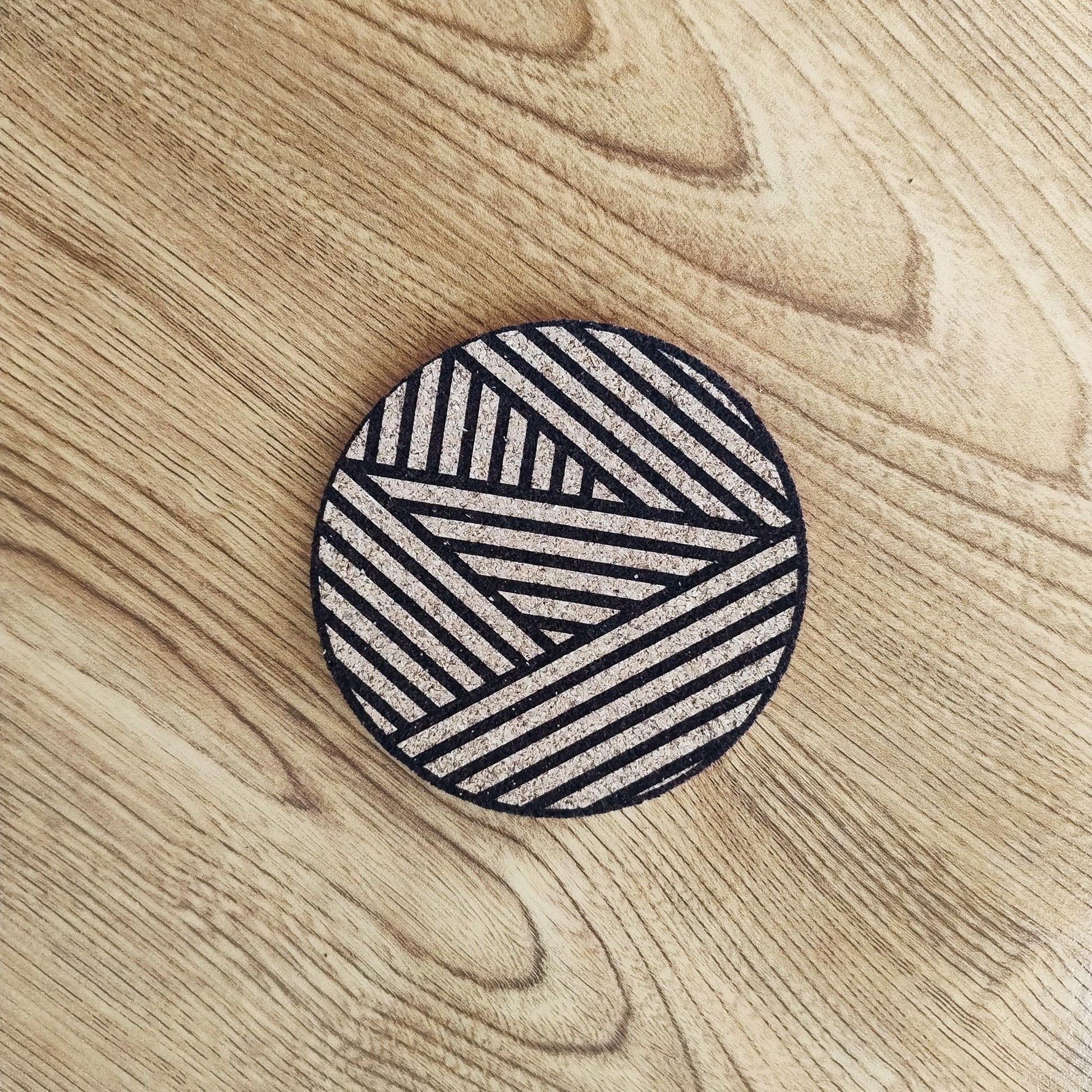 Sublimez votre table avec notre lot de 6 dessous de verre en liège, ornés d'un design géométrique unique.