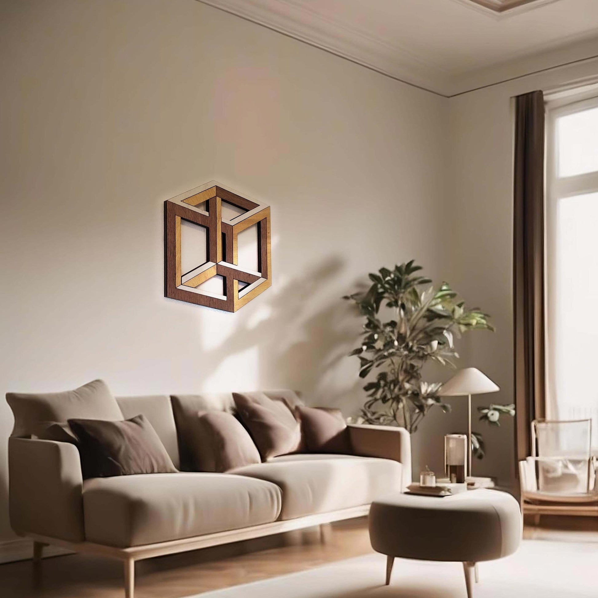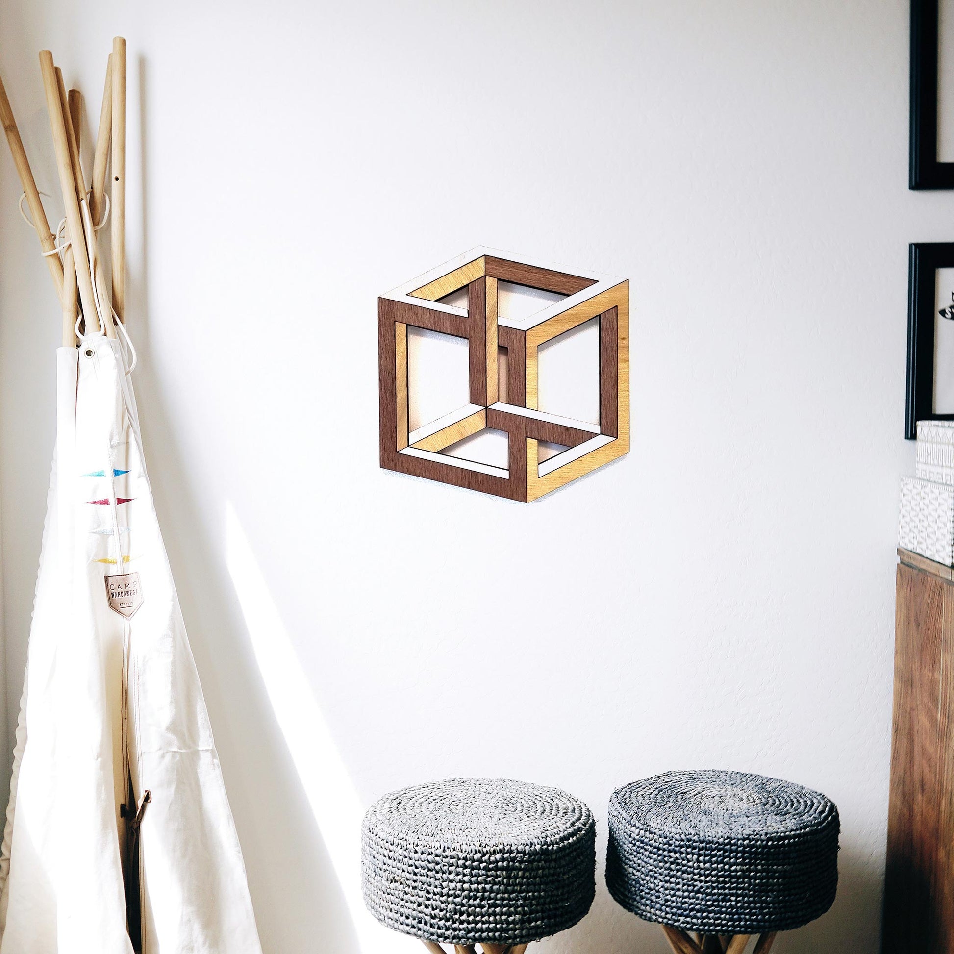 Découvrez l'original Tableau Bois Géométrie "Cube Impossible".