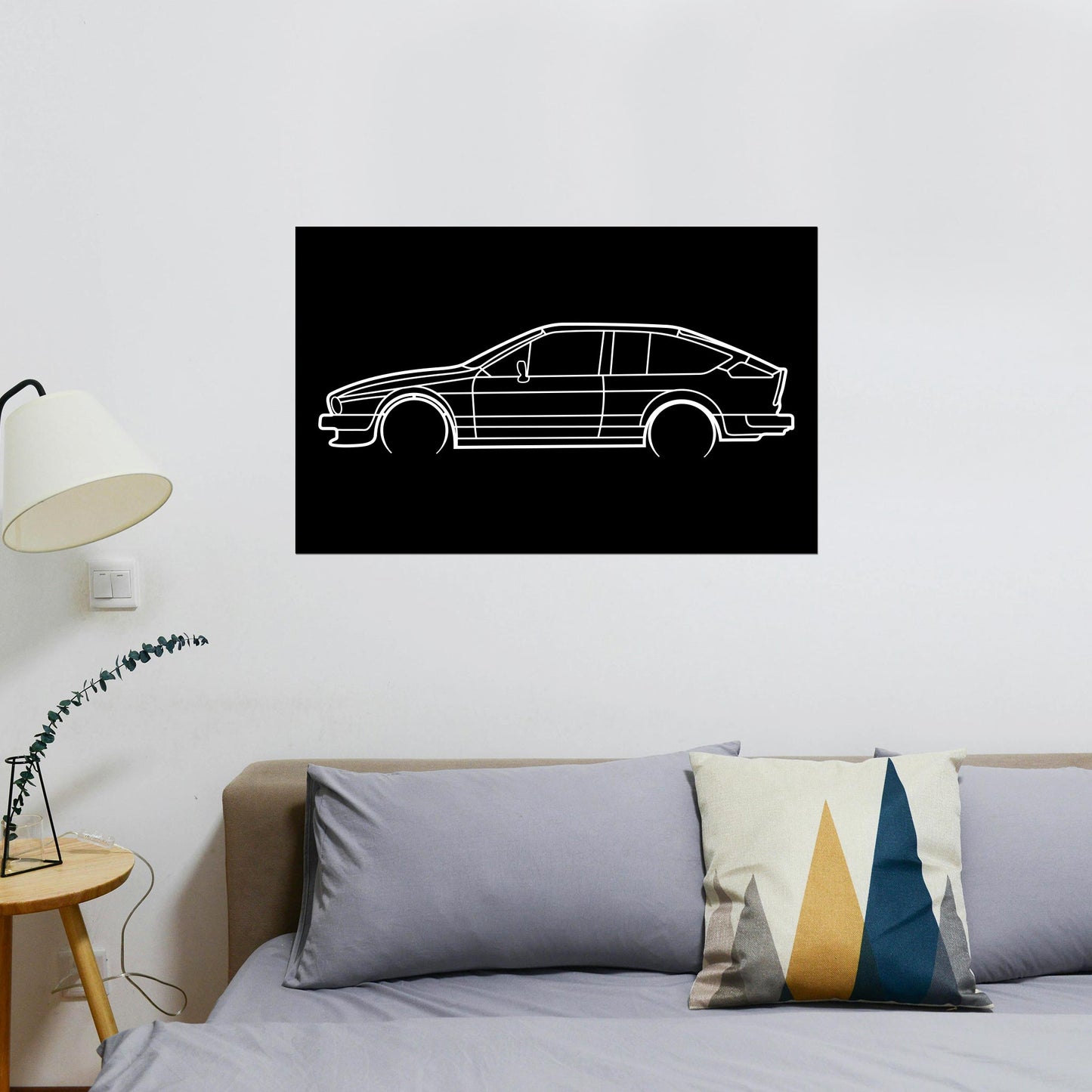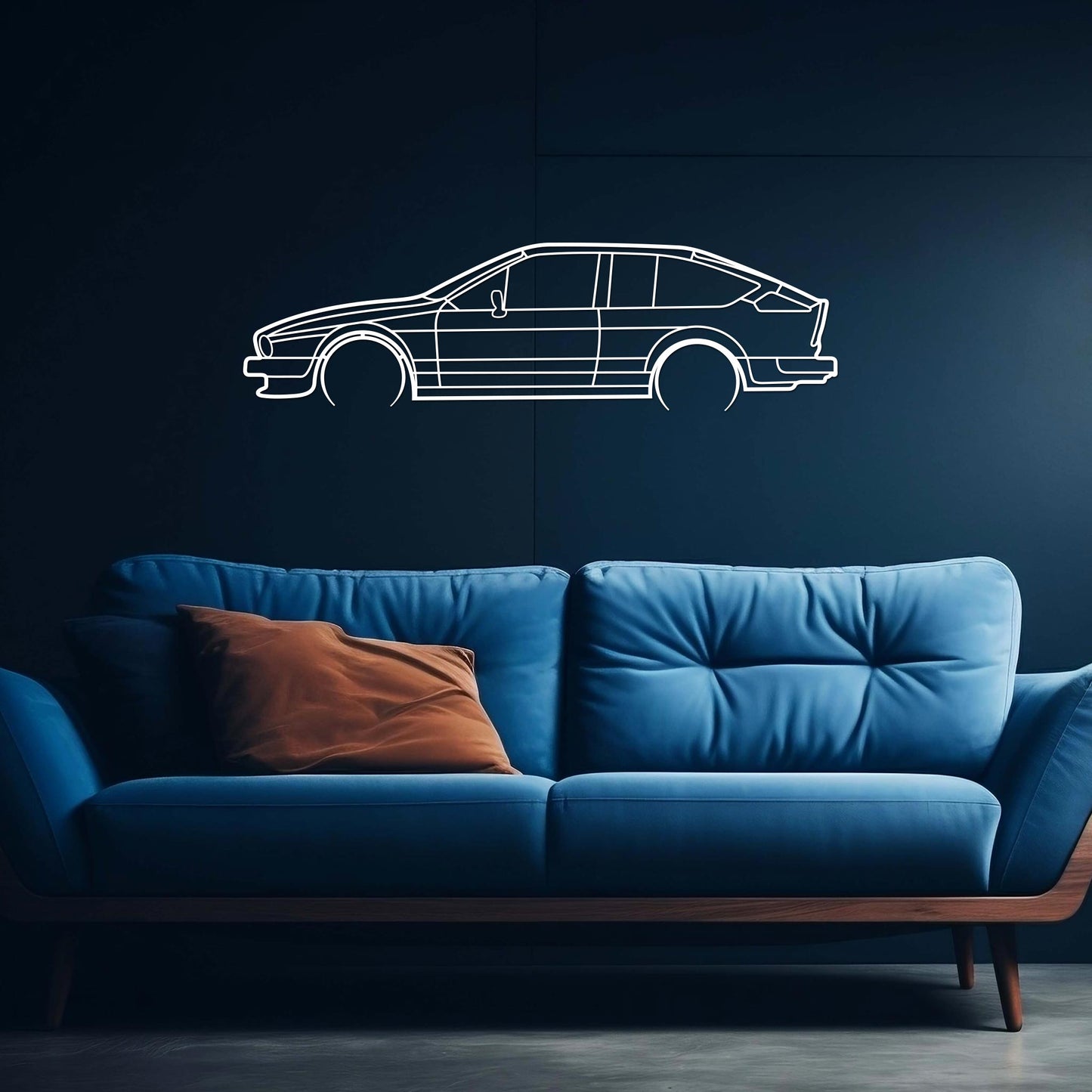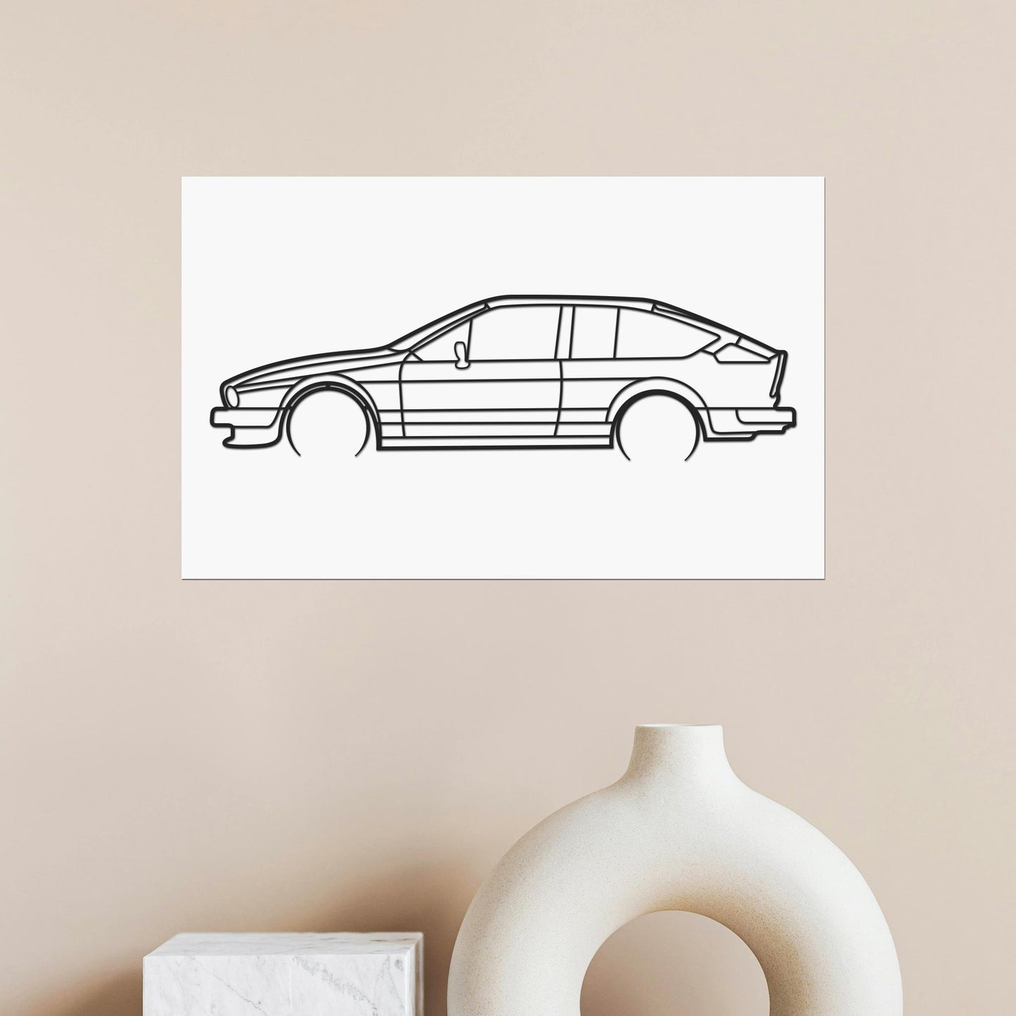 Ce tableau en bois représente la fabuleuse silhouette de l'Alfa Roméo GTV des années 70.